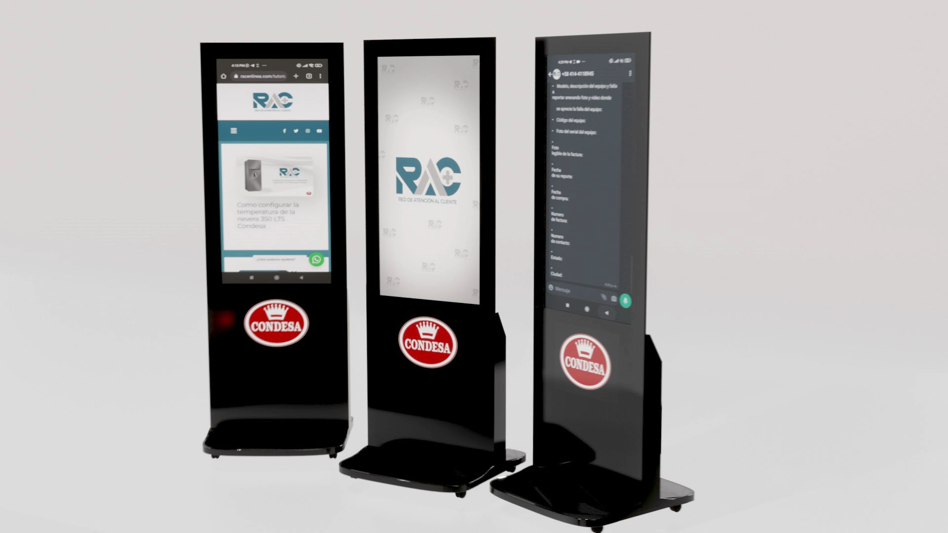 A través del tótem, los clientes podrán conocer las partes internas de los productos Condesa, presentadas con movimiento y en imagen 3D; de igual manera se tendrá información de marca del motor, tuberías e interior de los equipos.